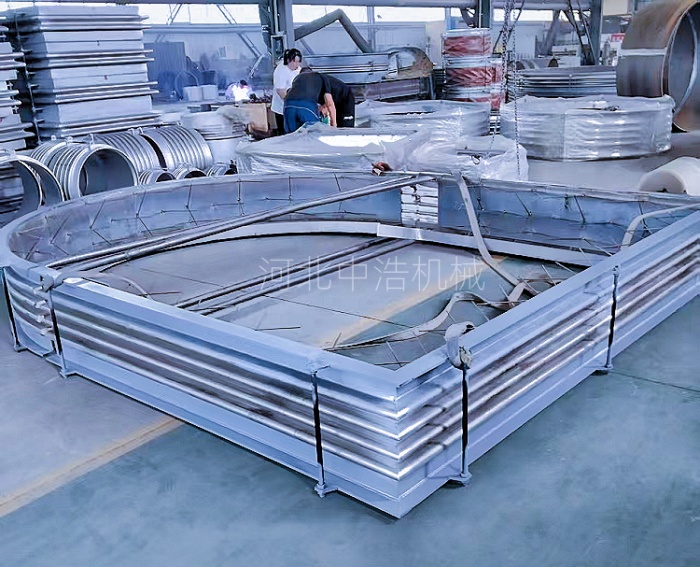 波紋成型江都控制難主要由于,大口徑波紋 膨脹節(jié)波紋展開尺寸大,下料的波高、波距等誤差控制難。成型一致性差,大尺寸板材在冷熱壓時應(yīng)力分布不均,易出現(xiàn)波紋壁厚不均,博文波峰塌陷、波谷凸起等問題,尤其是多成型,各波紋一致性難以控制。壁厚成型阻力大,成型需要更大壓力和確使溫度控制,易產(chǎn)生裂紋,且成型回彈量大。半圓靶釘焊接和定位難度,大口徑靶釘膨脹節(jié),由于內(nèi)壁空間大,設(shè)計時靶釘位置控制難,且靶釘易出現(xiàn)偏差影響直接流向和抗沖擊能力,中浩經(jīng)驗焊接師傅和特殊精度控制儀器從根本解決此項問題。焊接質(zhì)量把控要求嚴(yán)苛,靶釘與波紋內(nèi)壁緊密貼合,焊接時注意未融合、夾渣等問題。焊接時注意避免出現(xiàn)咬邊、氣孔,焊縫既要兼顧強度密封性,防止介質(zhì)滲漏。整體結(jié)構(gòu)強度與穩(wěn)定性難確使,由于焊縫較多且復(fù)雜,焊接中易產(chǎn)生應(yīng)力集中問題,需要采用特殊工藝處理。大口徑膨脹節(jié)抗穩(wěn)性要求高,在承受內(nèi)壓和位移時,易發(fā)生軸向失穩(wěn),中浩通過優(yōu)化焊接工藝和焊接質(zhì)量來增強剛性和平衡性。壁厚焊接和成型難度大,裝配難度大。